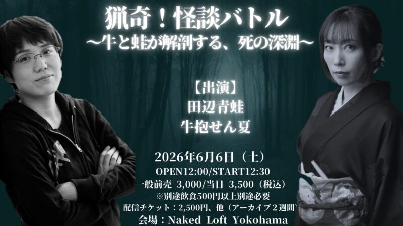 Bizarre! Strange Tale Battle ~Where Cow and Frog Dissect the Abyss of Death~ is a theatrical storytelling event that appears to blend Japanese kaidan (ghost story) traditions with contemporary performance art. The cryptic title suggests a darkly comedic or surrealist approach to exploring mortality and the macabre through narrative. This type of event typically features live performers engaging in competitive or collaborative storytelling, often with absurdist or horror elements. The event represents a niche within Tokyo's experimental nightlife scene that appeals to those seeking unconventional entertainment.