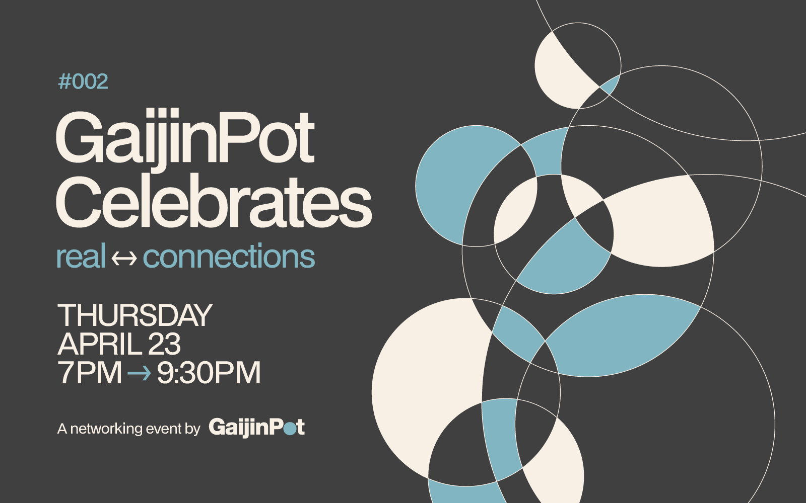 GaijinPot Celebrates: Real Connections is a social gathering organized by GaijinPot, a platform serving the international community in Japan. The event takes place at a rooftop venue with views of Tokyo Tower and centers around casual mingling over tacos, craft beer, and drinks. Unlike formal networking events, this gathering emphasizes relaxed socializing with a standing buffet, free-flow beverages, live music, and a door prize drawing. It provides an opportunity for expats and international residents to meet others in Tokyo's foreign community.