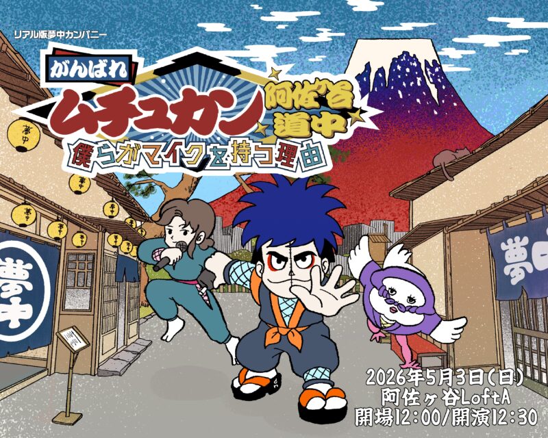 Hang in There Muchukan Asagaya Journey: The Reason We Hold the Microphone is a live performance event taking place in Tokyo's Asagaya neighborhood. Muchukan is a well-known live music venue in Asagaya that hosts various musical acts and spoken word performances. The event title suggests a commemorative or reflective performance exploring the motivations and journey of the performers. This appears to be a special edition event scheduled for Golden Week, one of Japan's major holiday periods.