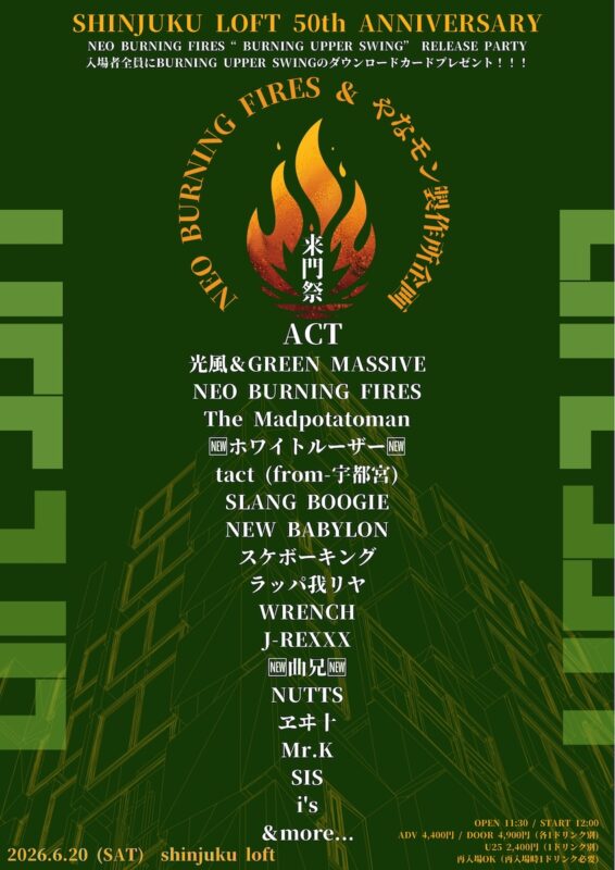 The Kaimon Festival is a nightlife event in Tokyo presented by NEO BURNING FIRES and Yana Mon Production Planning. Based on the production companies involved, this appears to be a music-focused gathering scheduled for June 2026. The event name 'Kaimon' suggests a celebration or opening, though specific programming details are not publicly available. This represents part of Tokyo's diverse underground and alternative music scene.