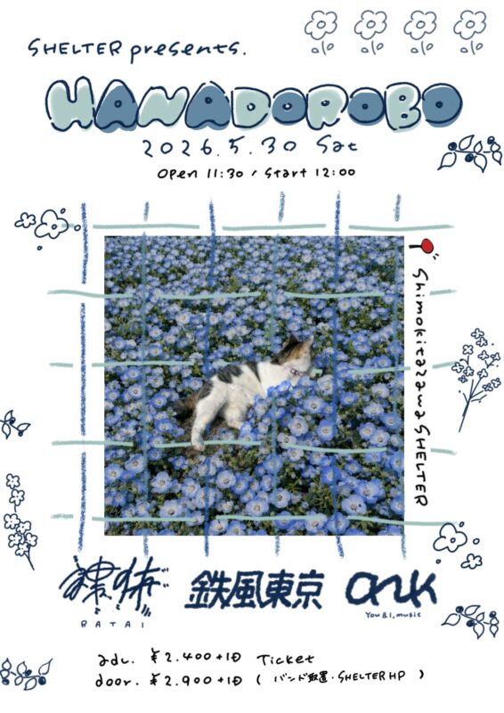 SHELTER presents 'HANADOROBO' is a nightlife event taking place at SHELTER, a well-known underground club venue in Tokyo's Shimokitazawa district. The event name 'HANADOROBO' translates to 'flower thief' in Japanese, suggesting a creative or artistic theme for this club night. SHELTER is recognized for hosting alternative music events, DJ performances, and underground culture gatherings. This appears to be a curated club event presented by the venue itself.