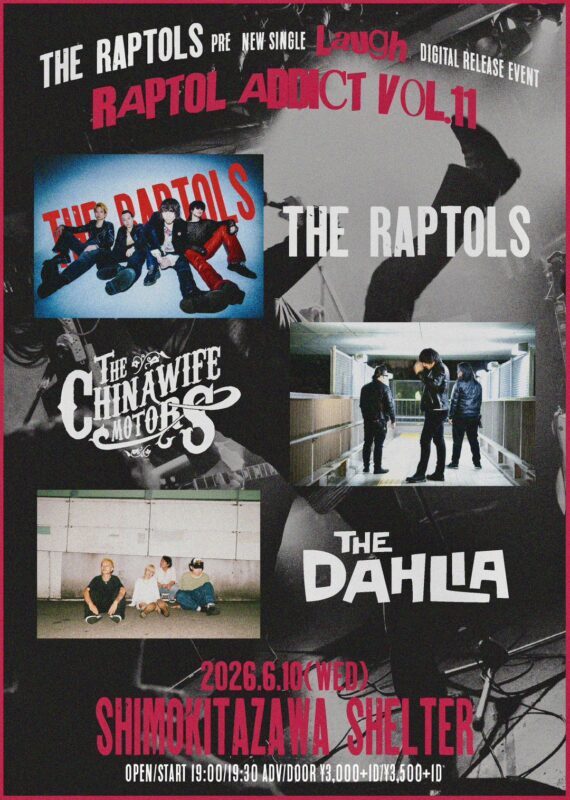 THE RAPTOLS new single 'Laugh' digital release event 'RAPTOL ADDICT vol.11' is a live music performance celebrating the band's latest single release. RAPTOL ADDICT is the band's recurring event series, now in its eleventh installment. This nightlife event provides fans an opportunity to experience the new material performed live alongside the band's existing repertoire. Digital release events have become increasingly common in Japan's independent music scene, offering artists direct engagement with their audience.
